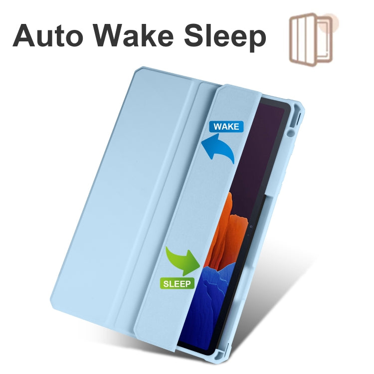 For Samsung Galaxy Tab S8 Ultra Acrylic 3-folding Smart Leather Tablet Case(Ice Blue)