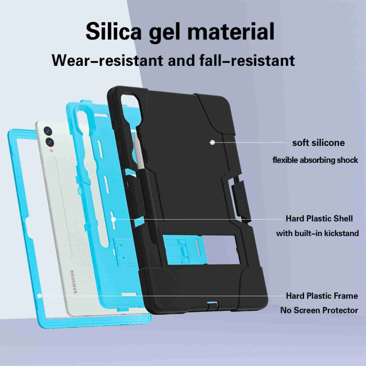 For Samsung Galaxy Tab S9+ Contrast Color Silicone PC Tablet Case with Holder(Black + Blue)