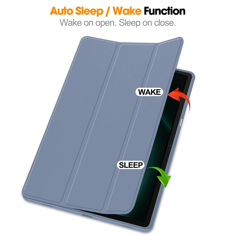 For Samsung Galaxy Tab S9 FE+ / S10+ 3-Fold Pure Color TPU Smart Leather Tablet Case with Pen Slot(Lavender)