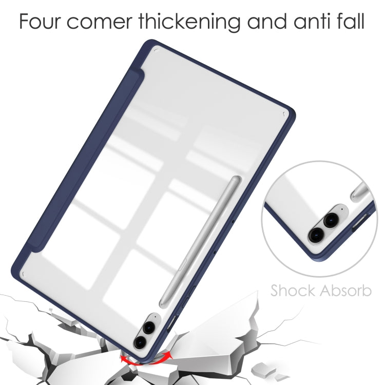 For Samsung Galaxy Tab S9 FE+ / S10+ Acrylic 3-folding Smart Leather Tablet Case with Pen Slot(Dark Blue)