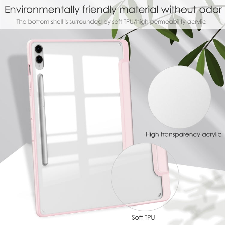 For Samsung Galaxy Tab S9 FE+ / S10+ Acrylic 3-folding Smart Leather Tablet Case with Pen Slot(Pink)