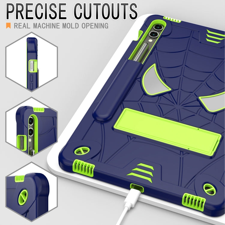 For Samsung Galaxy Tab S9 FE+ / S9+ Fold-Holder Spider Silicone Hybrid PC Tablet Case(Navy Yellow Green)