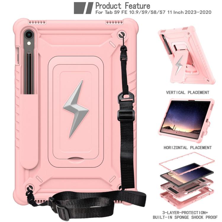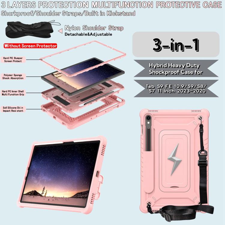 For Samsung Galaxy Tab S9 FE / S9 / S8 Armor Bolt Shape Holder Silicone Hybrid PC Tablet Case(Rose Gold)