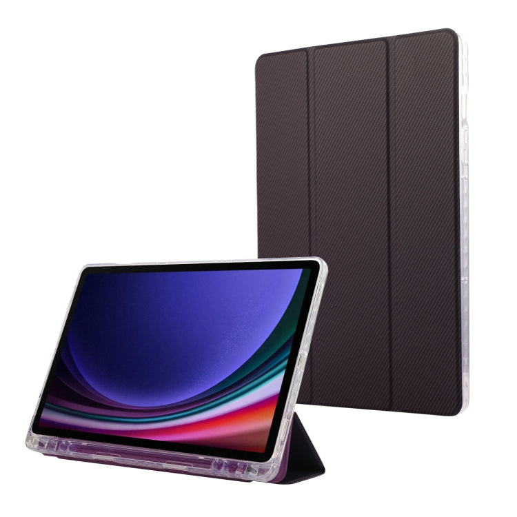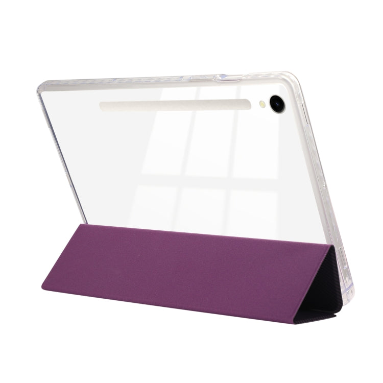 For Samsung Galaxy Tab S9 / S9 FE Carbon Fiber Clear Acrylic 3-Fold Leather Tablet Case(Purple)