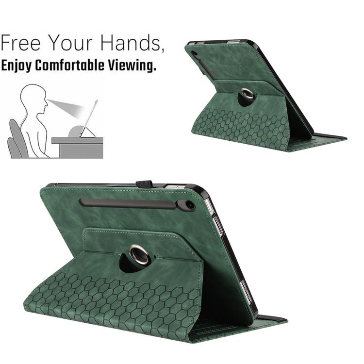 For Samsung Galaxy Tab S9+ / Tab S9 FE+ Rotatable Honeycomb Embossed Smart Leather Tablet Case(Green)