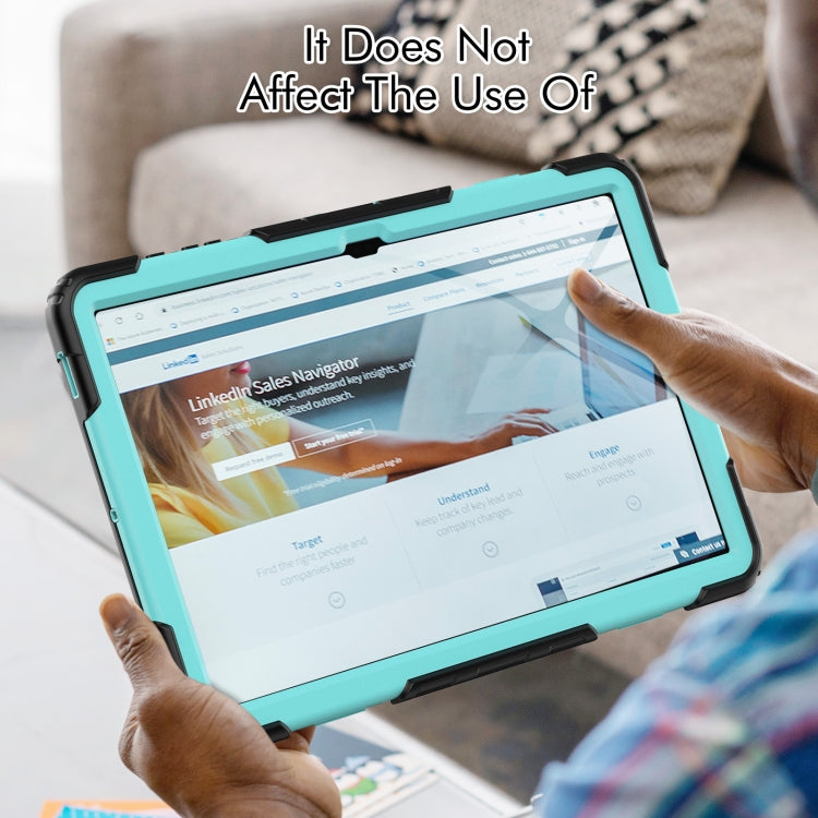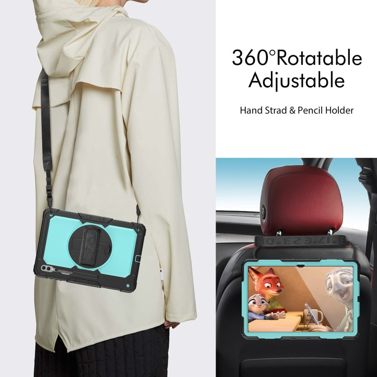 For Samsung Galaxy Tab S9 Ultra / S10 Ultra Lucky Wheel Grip Silicone Hybrid PC Tablet Case with Shoulder Strap(Black+Light Blue)