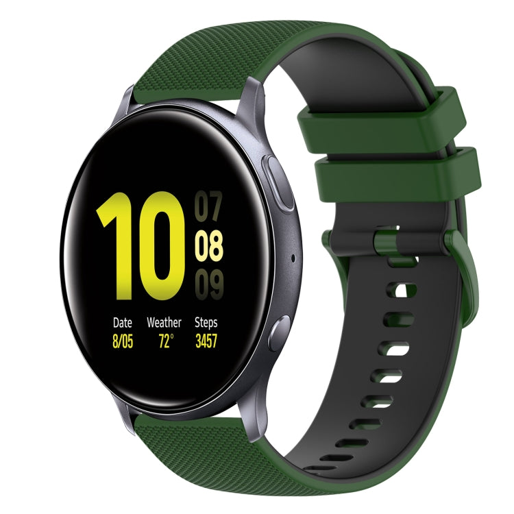For Samsung Galaxy Watch Active2 40mm 20mm Checkered Two-Color Silicone Watch Band(Amy Green+Black)