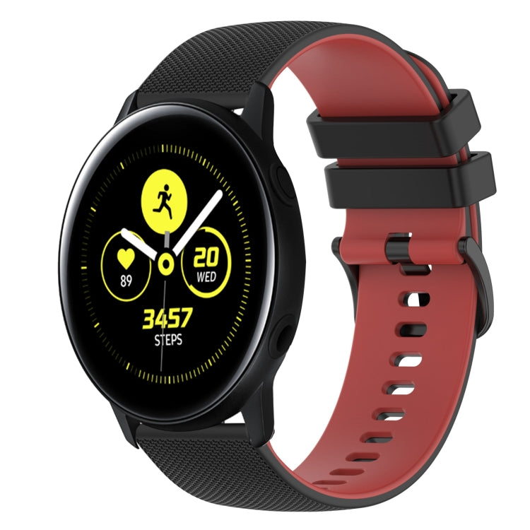 For Samsung Galaxy Watch Active2 44mm 20mm Checkered Two-Color Silicone Watch Band(Black+Red)