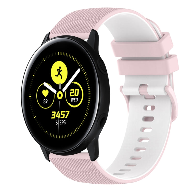 For Samsung Galaxy Watch Active2 44mm 20mm Checkered Two-Color Silicone Watch Band(Pink+White)