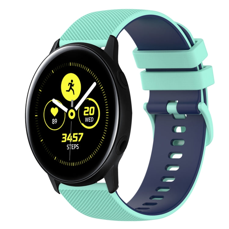 For Samsung Galaxy Watch Active2 44mm 20mm Checkered Two-Color Silicone Watch Band(Teal+Blue)