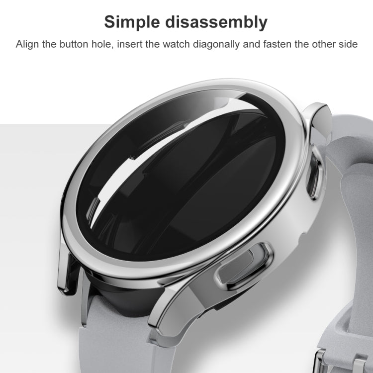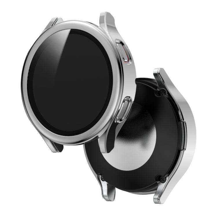 For Samsung Galaxy Watch4 44mm Electroplated PC + Tempered Glass Film Integrated Protective Case(Silver)