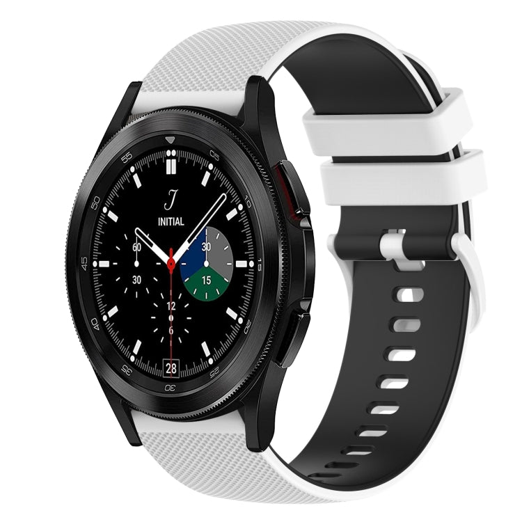 For Samsung Galaxy Watch4 Classic 46mm 20mm Checkered Two-Color Silicone Watch Band(White+Black)