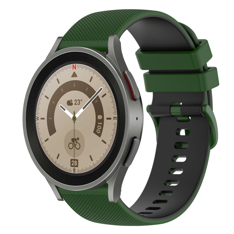 For Samsung Galaxy Watch5 Pro 45mm 20mm Checkered Two-Color Silicone Watch Band(Amy Green+Black)