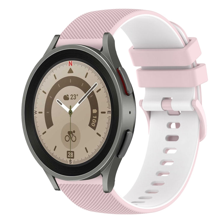 For Samsung Galaxy Watch5 Pro 45mm 20mm Checkered Two-Color Silicone Watch Band(Pink+White)