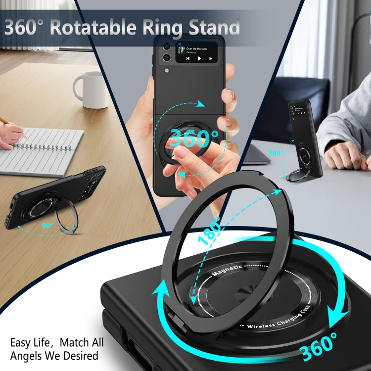 For Samsung Galaxy Z Flip4 360 Rotation Ring Holder MagSafe Shockproof PC Phone Case(Black)