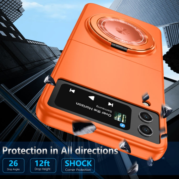 For Samsung Galaxy Z Flip4 360 Rotation Ring Holder MagSafe Shockproof PC Phone Case(Orange)