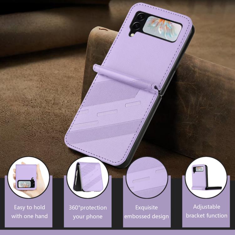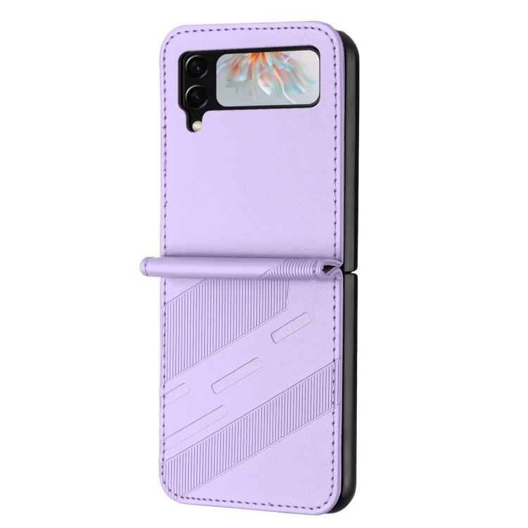 For Samsung Galaxy Z Flip4 5G Embossed Multi-functional Wallet Retro Leather Phone Case(Light Purple)