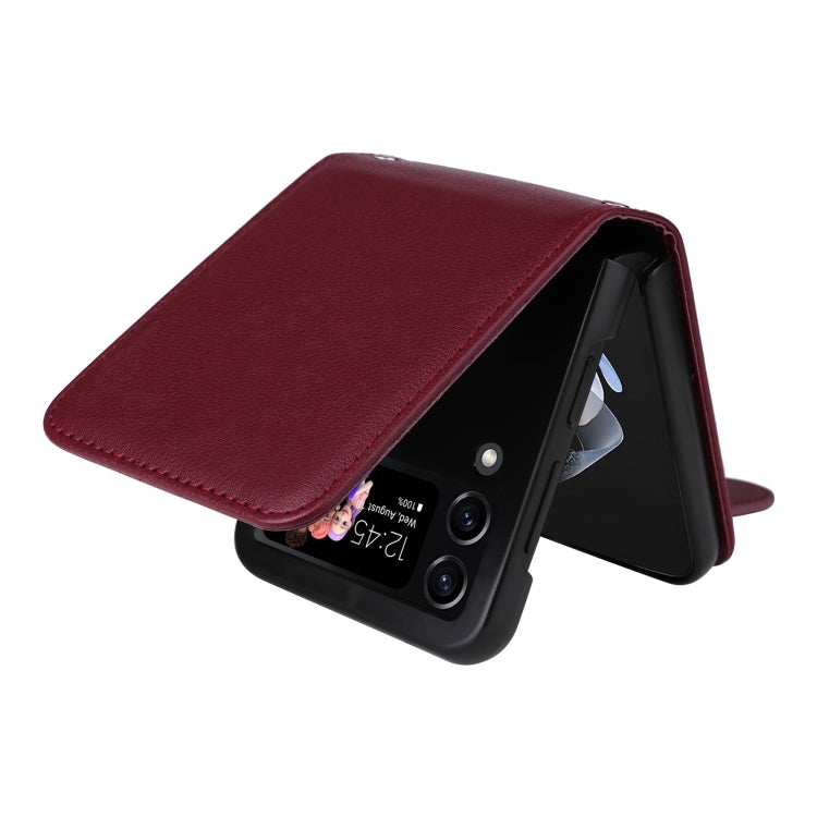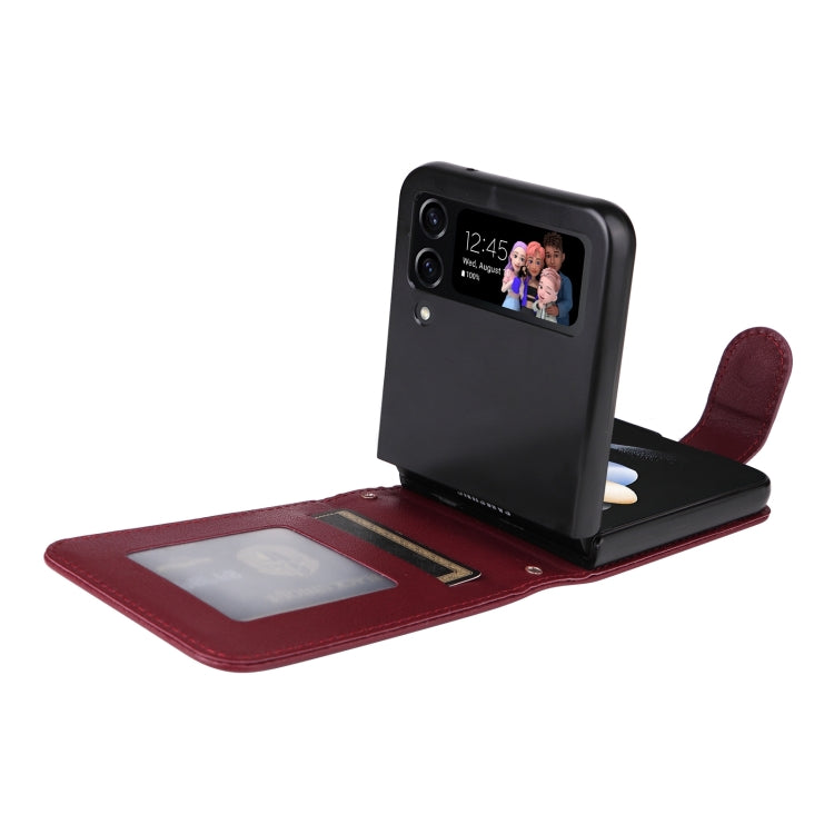 For Samsung Galaxy Z Flip4 5G Multifunctional Horizontal Flip Leather Phone Case with Three Card Slot(Wine Red)