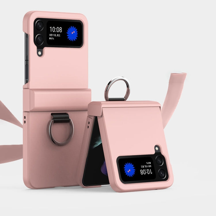 For Samsung Galaxy Z Flip4 5G Ultra-thin Skin Feel Ring Phone Case with Hinge(Pink)