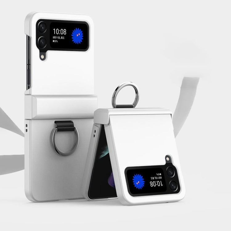 For Samsung Galaxy Z Flip4 5G Ultra-thin Skin Feel Ring Phone Case with Hinge(White)