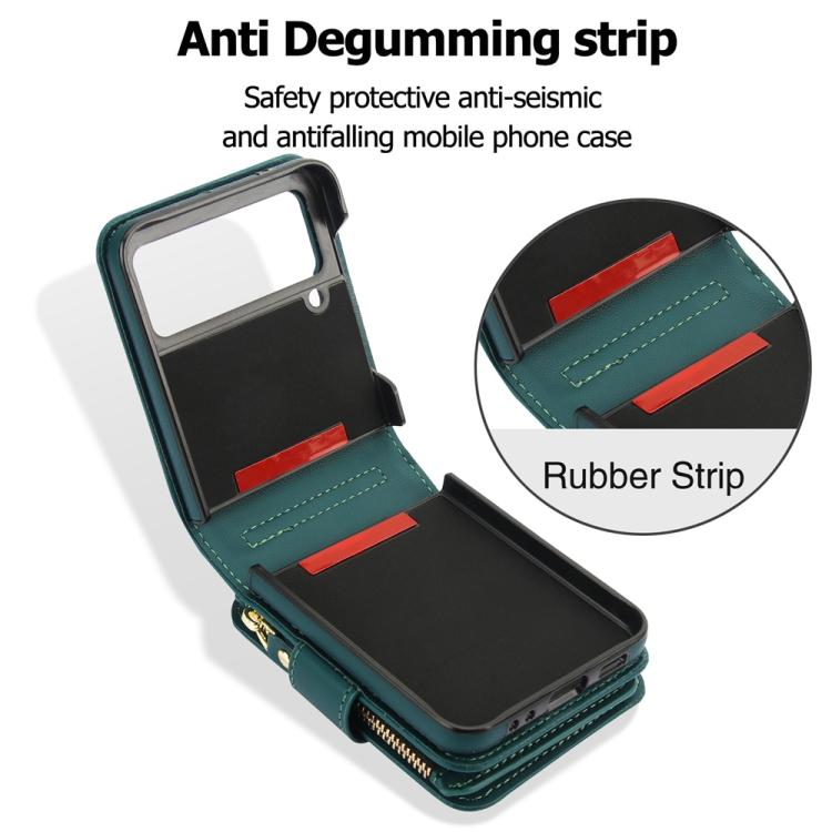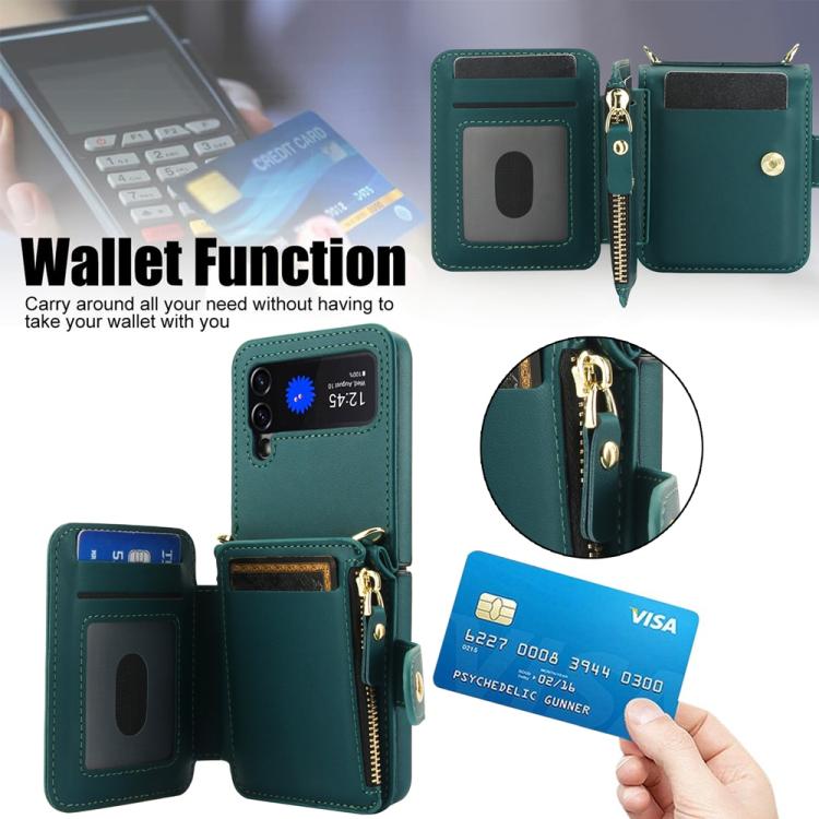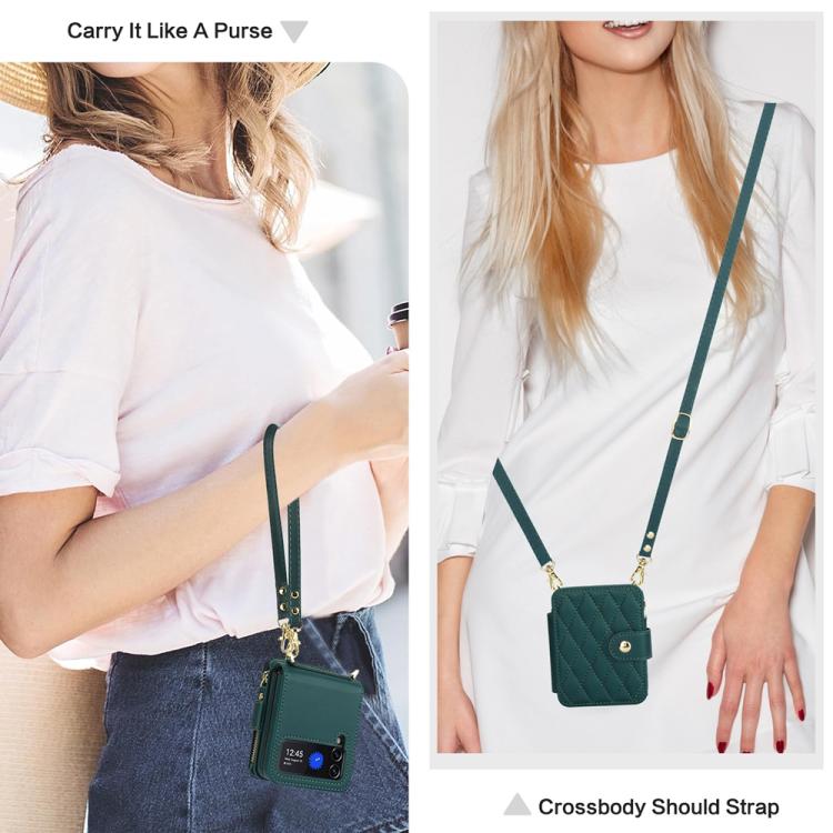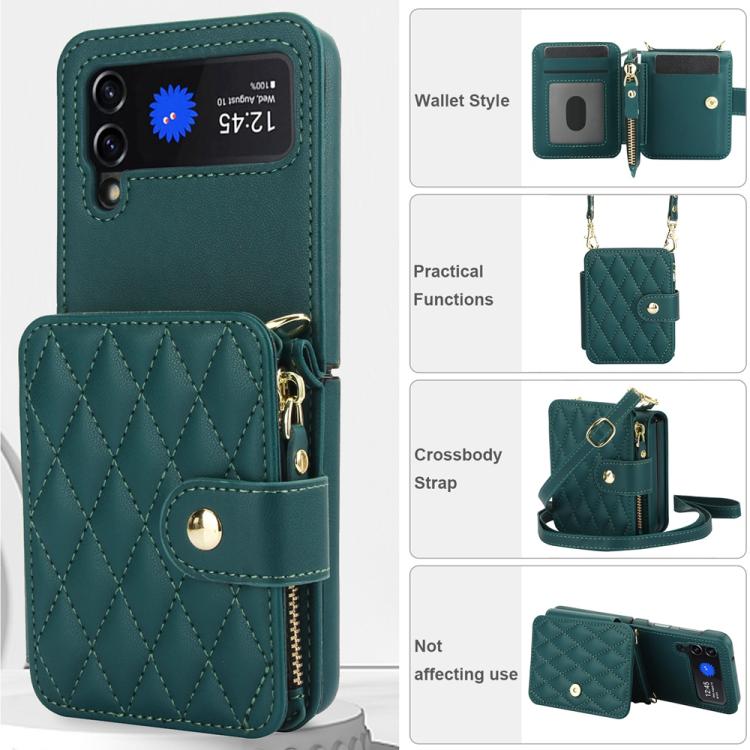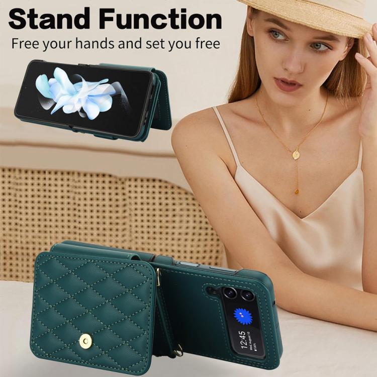 For Samsung Galaxy Z Flip4 Crossbody Rhombus Wallet Bag Folding Phone Case with Lanyard(Green)
