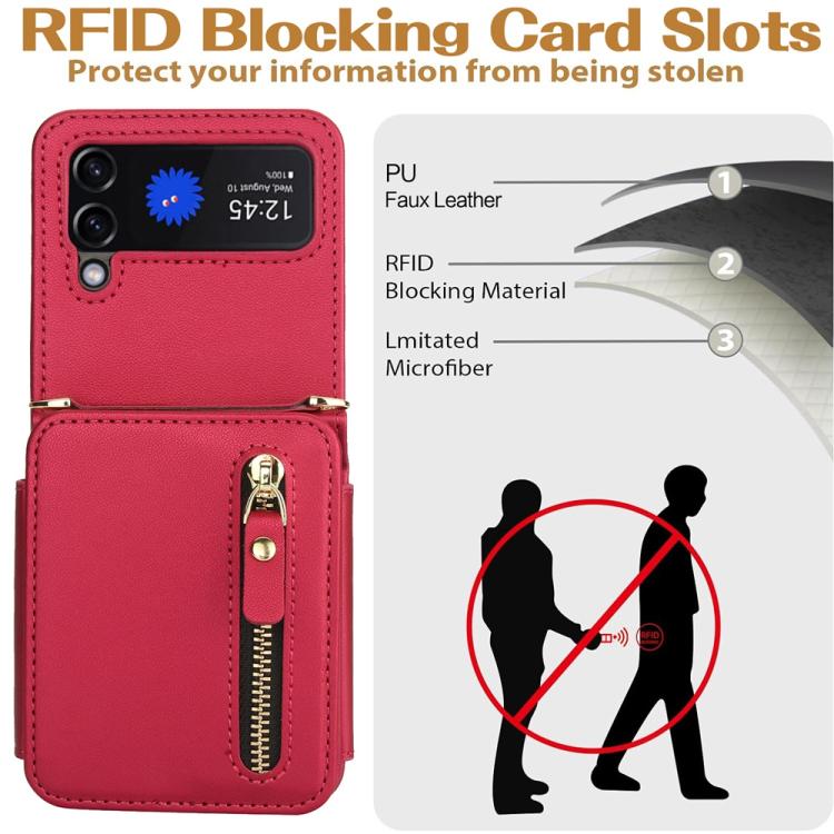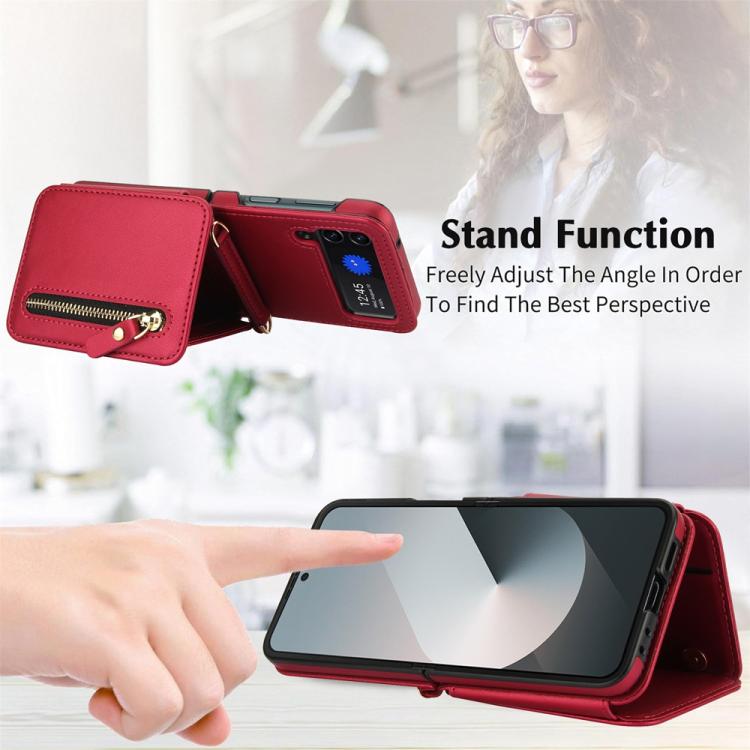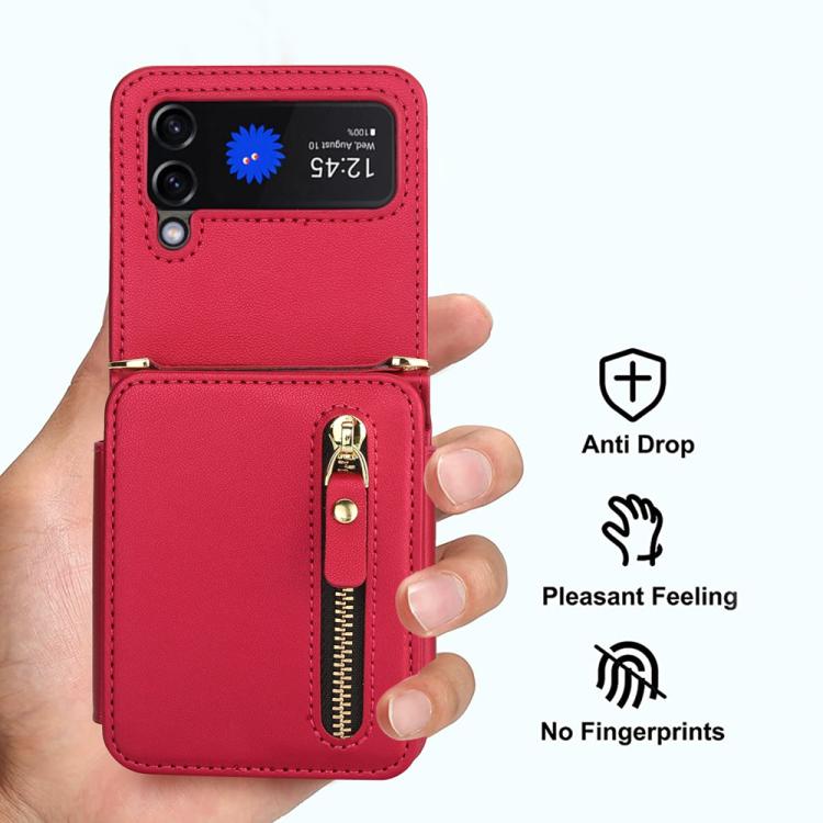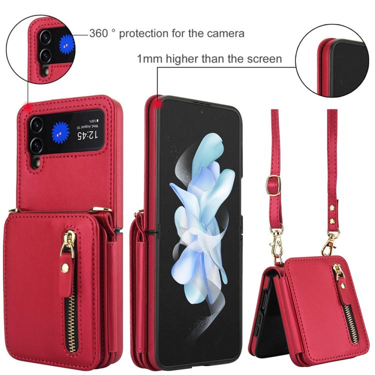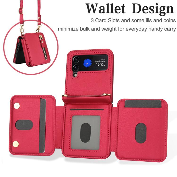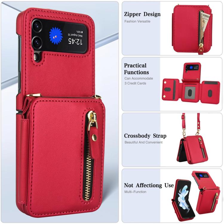 For Samsung Galaxy Z Flip4 Crossbody Zipper Dual Buckle Card Bag Folding Phone Case(Red)