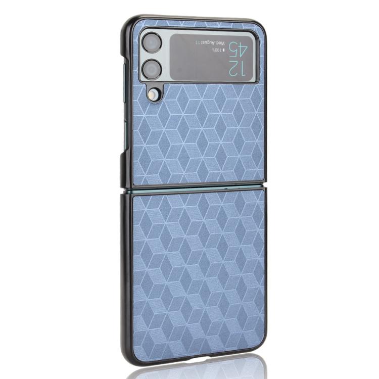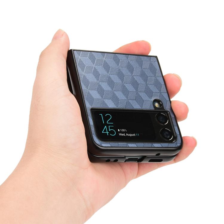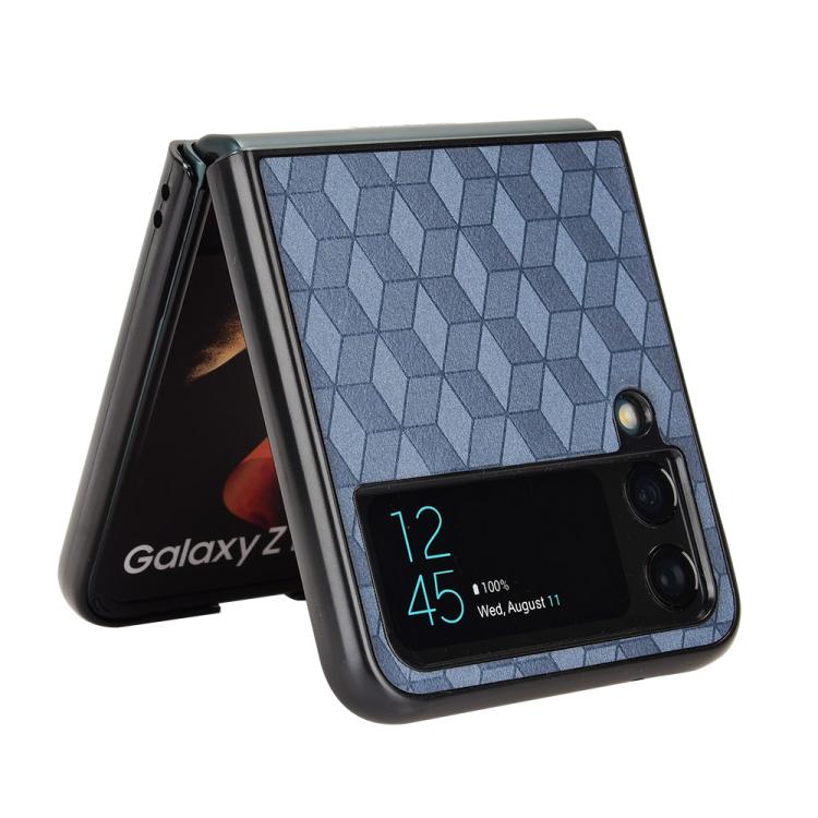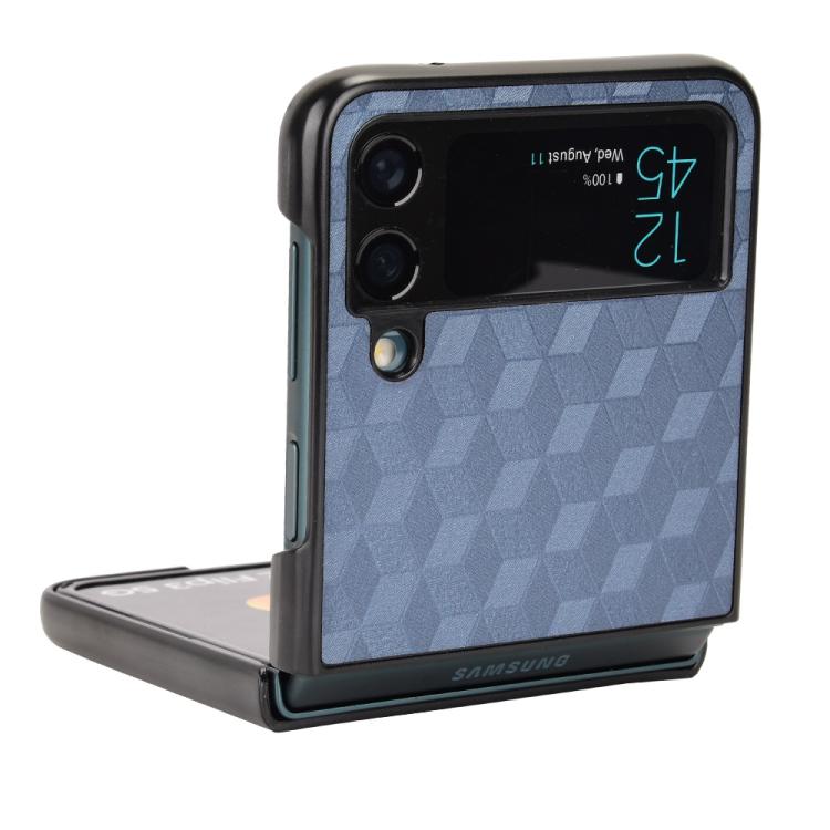 For Samsung Galaxy Z Flip4 Cubic Grid Texture Leather Back Cover Phone Case(Blue)