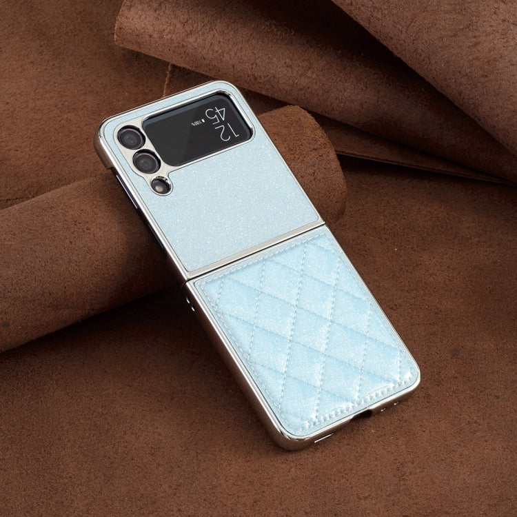 For Samsung Galaxy Z Flip4 Electroplating Rhombic Glitter PU Phone Case(Light Blue)