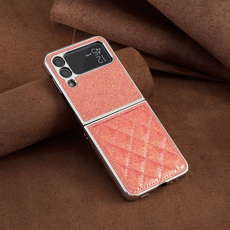 For Samsung Galaxy Z Flip4 Electroplating Rhombic Glitter PU Phone Case(Orange)