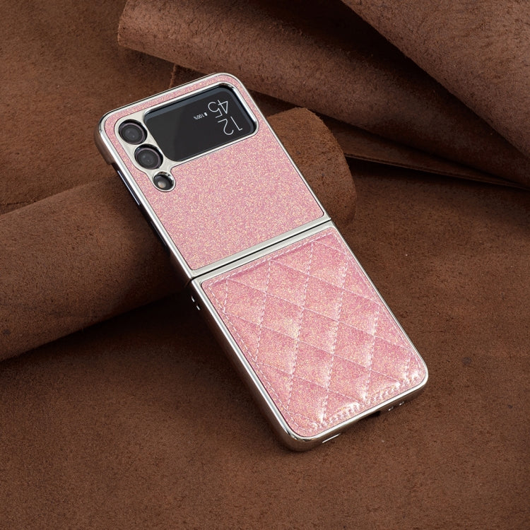 For Samsung Galaxy Z Flip4 Electroplating Rhombic Glitter PU Phone Case(Rose Red)