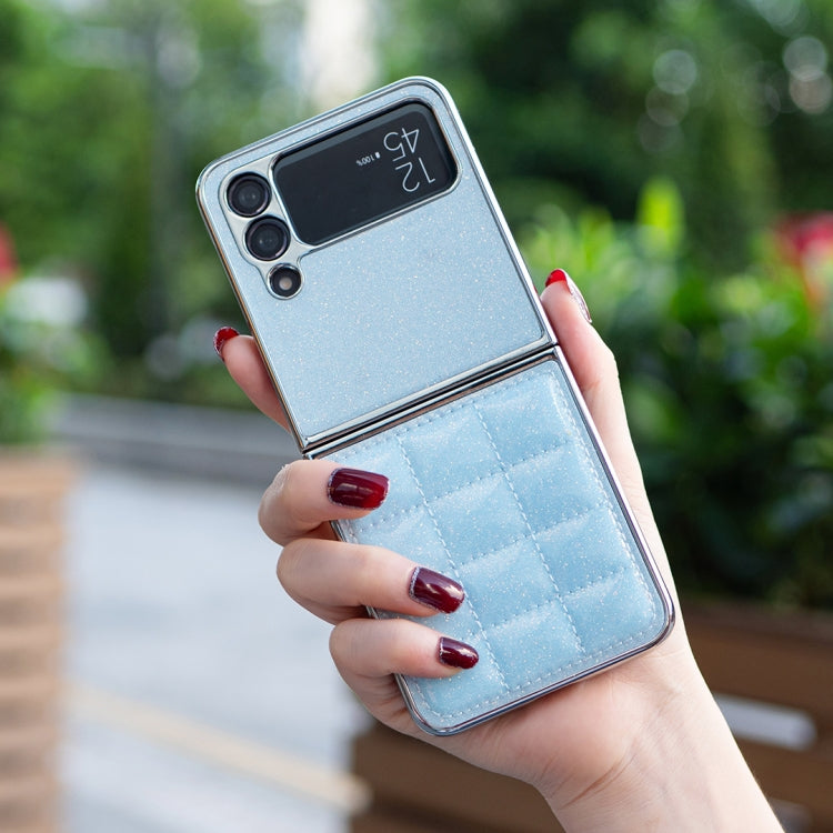 For Samsung Galaxy Z Flip4 Electroplating Square Glitter PU Phone Case(Light Blue)