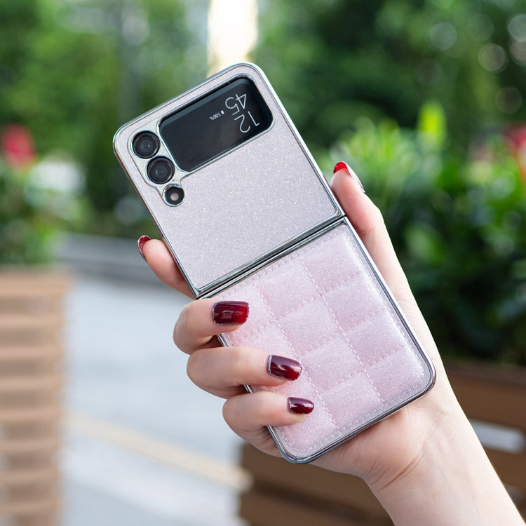 For Samsung Galaxy Z Flip4 Electroplating Square Glitter PU Phone Case(Pink)
