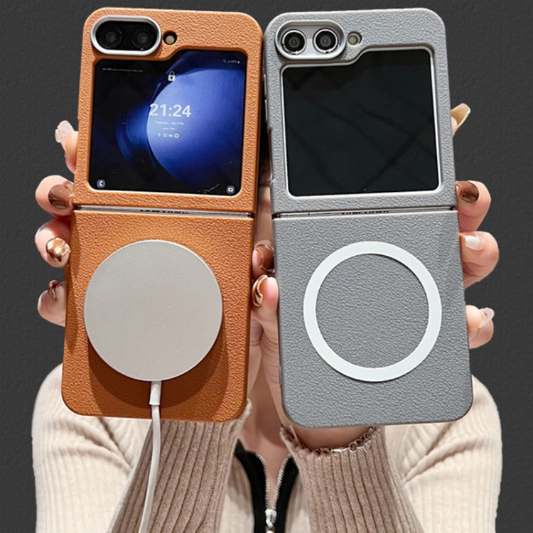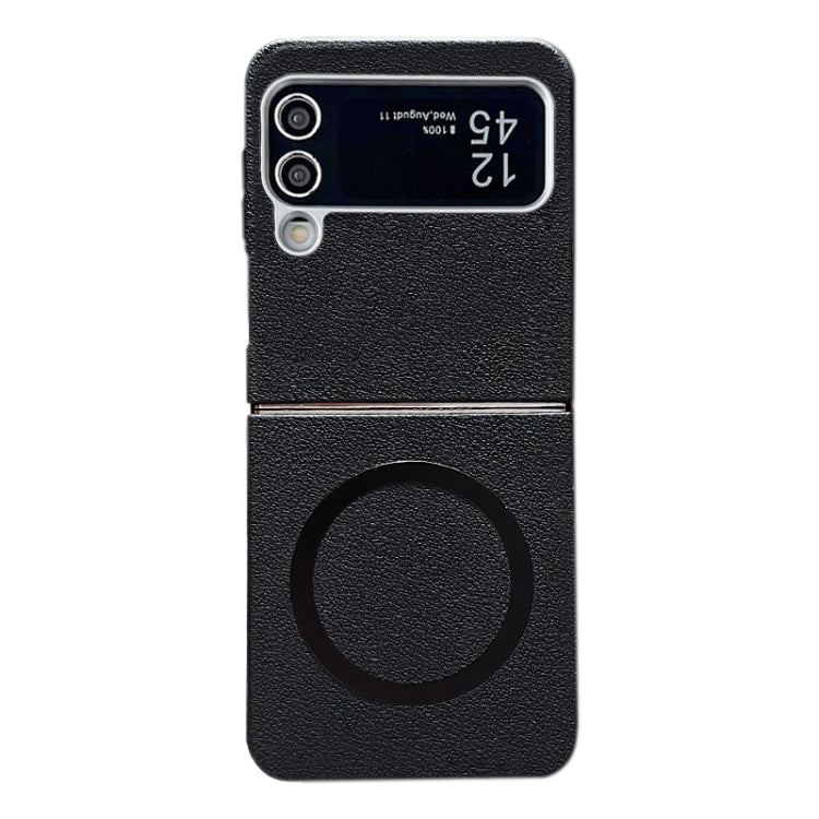 For Samsung Galaxy Z Flip4 Leather Texture Design MagSafe Full Coverage Phone Case(Black)