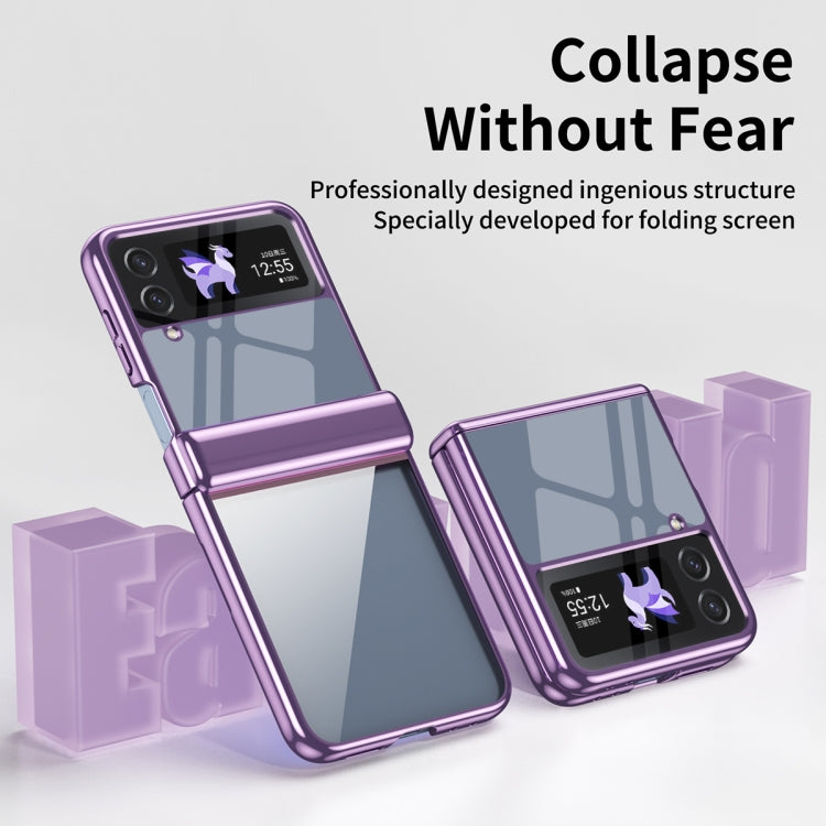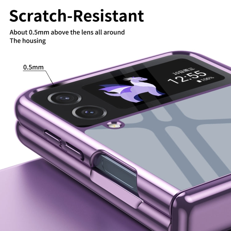 For Samsung Galaxy Z Flip4 Plating Transparent Folding Hinged Phone Case(Purple)