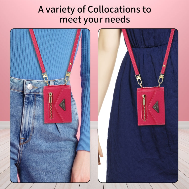 For Samsung Galaxy Z Flip4 POLA Grid Texture Multi-Card Slots Zipper Wallet Phone Case(Rose Red)