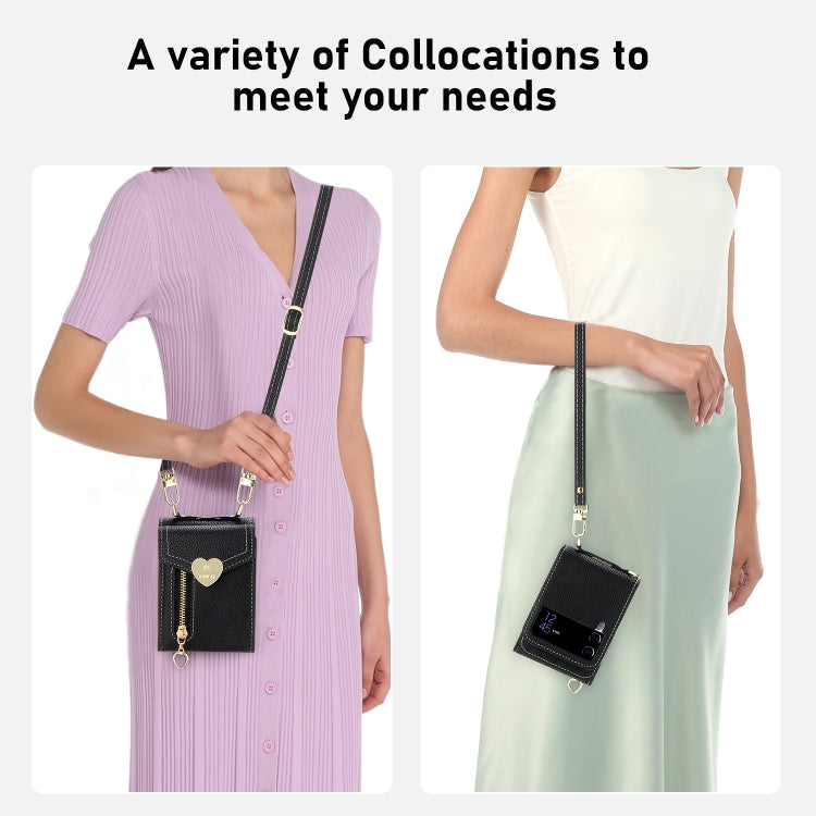 For Samsung Galaxy Z Flip4 POLA Litchi Texture Love Buckle Multi-Card Slots Zipper Wallet Phone Case(Black)