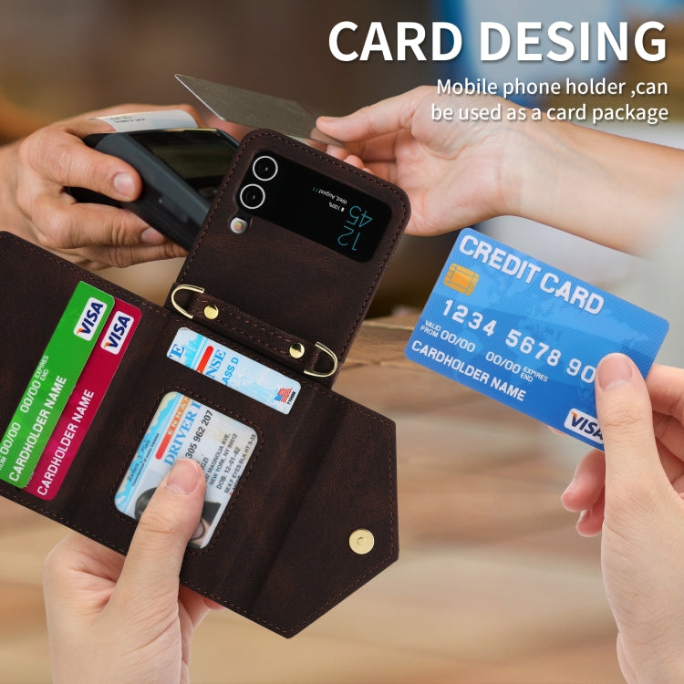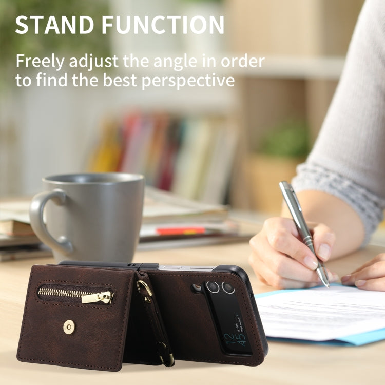 For Samsung Galaxy Z Flip4 POLA Skin Feel Multi-Card Slots Zipper Wallet Phone Case(Brown)