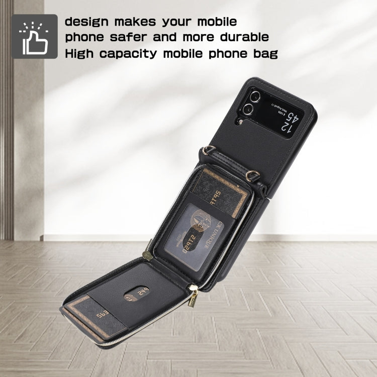 For Samsung Galaxy Z Flip4 Rhombic Full Zipper Wallet Leather Phone Case(Black)