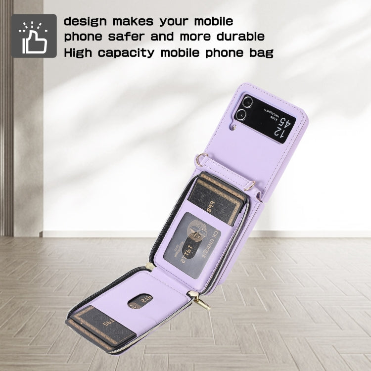 For Samsung Galaxy Z Flip4 Rhombic Full Zipper Wallet Leather Phone Case(Purple)