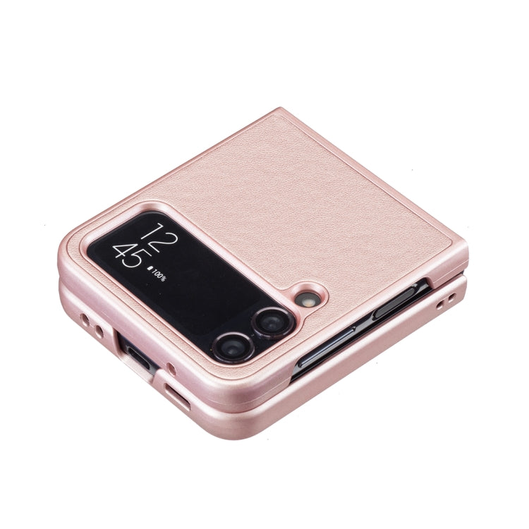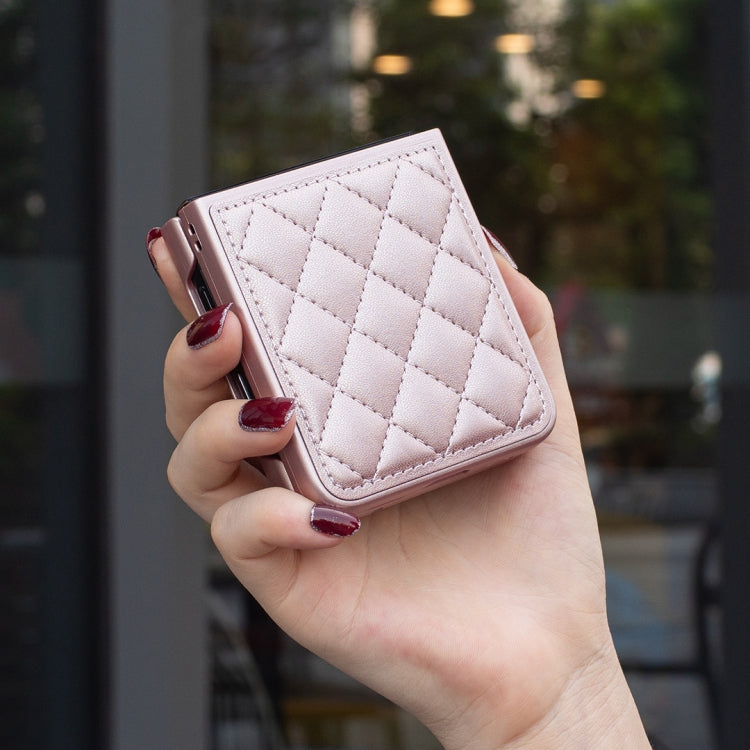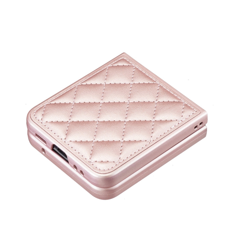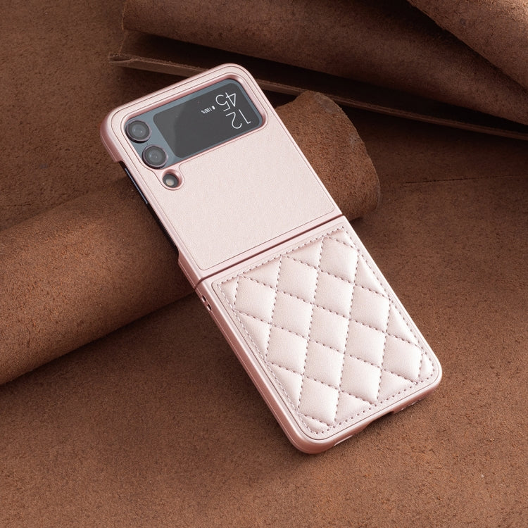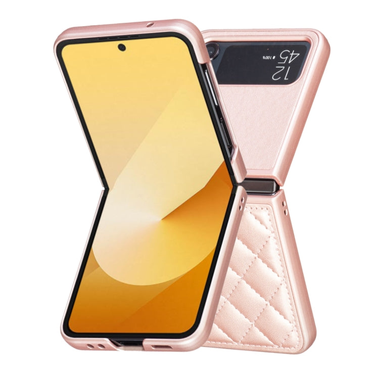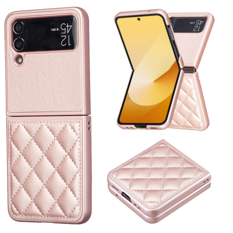 For Samsung Galaxy Z Flip4 Rhombus-shaped Leather Back Cover Phone Case(Rose Gold)