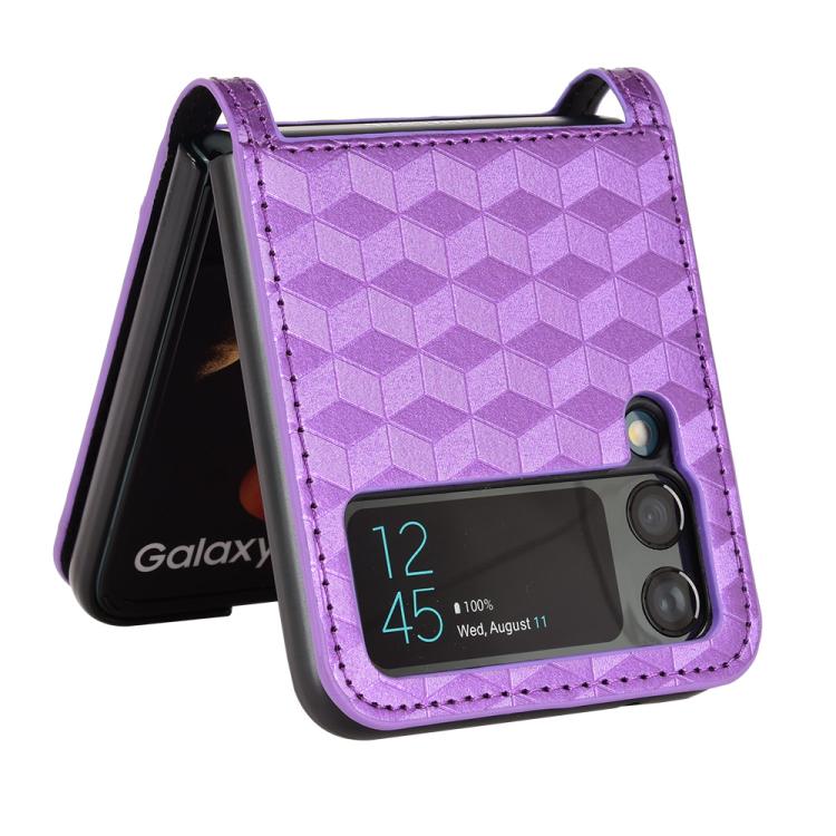For Samsung Galaxy Z Flip4 Siamese Cubic Grid Texture Card Slot Leather Phone Case(Purple)
