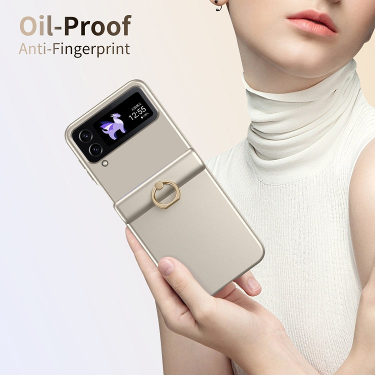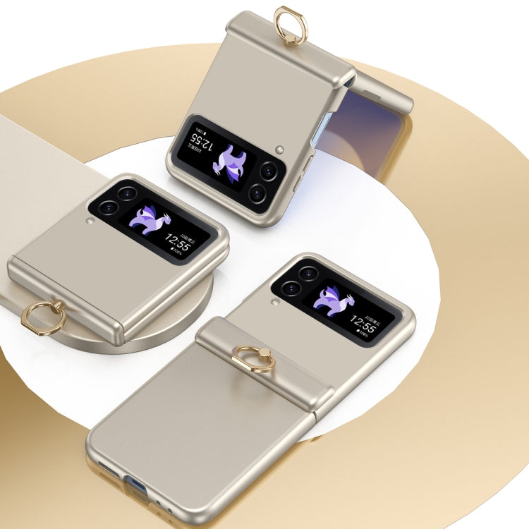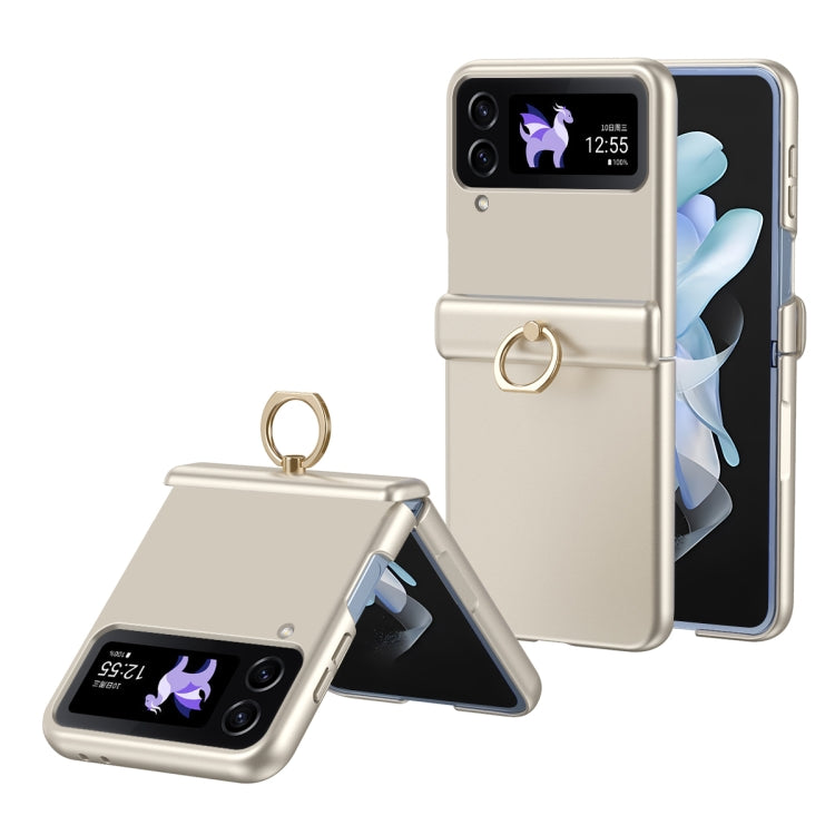For Samsung Galaxy Z Flip4 Starry Sky Plated Ring Case-film Integrated Phone Case(Champagne Gold)