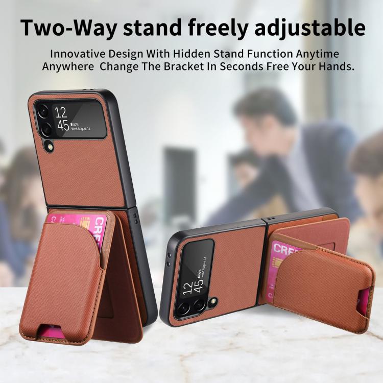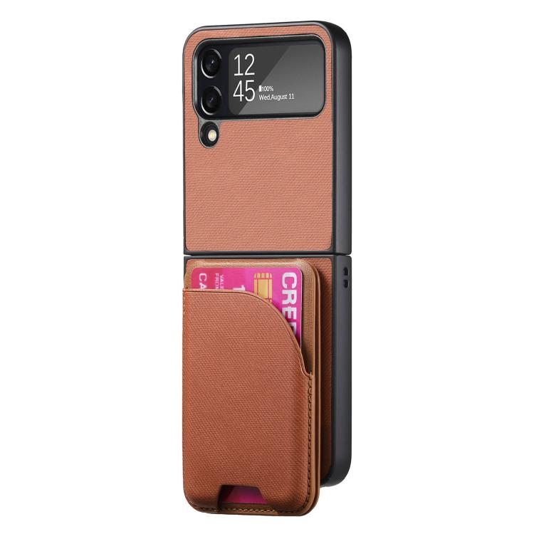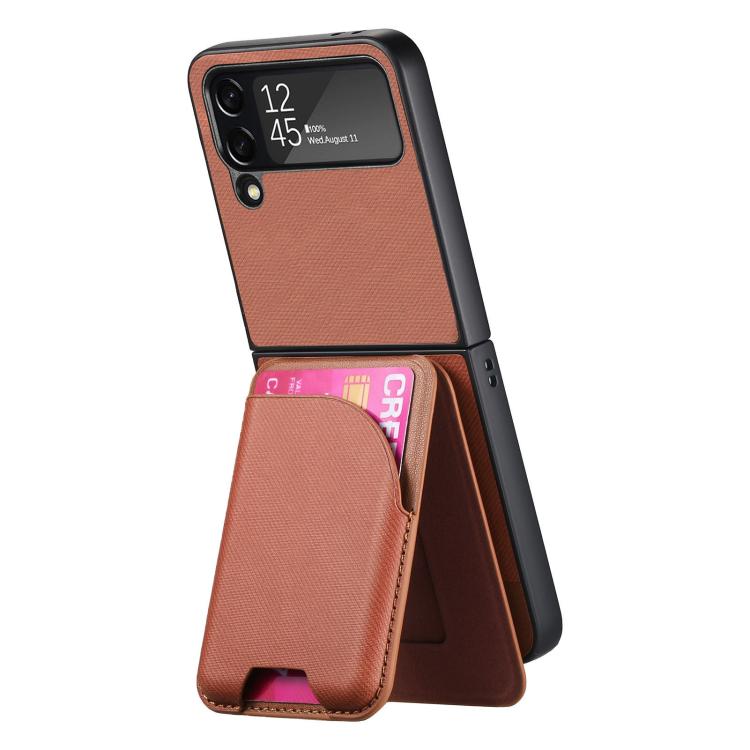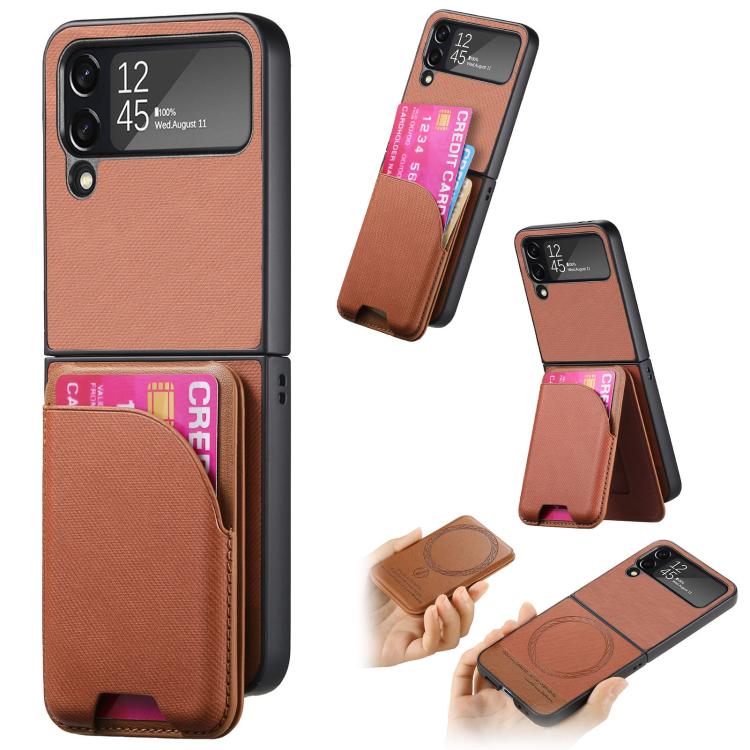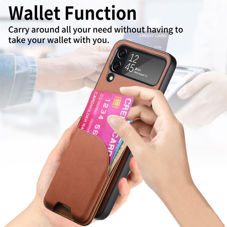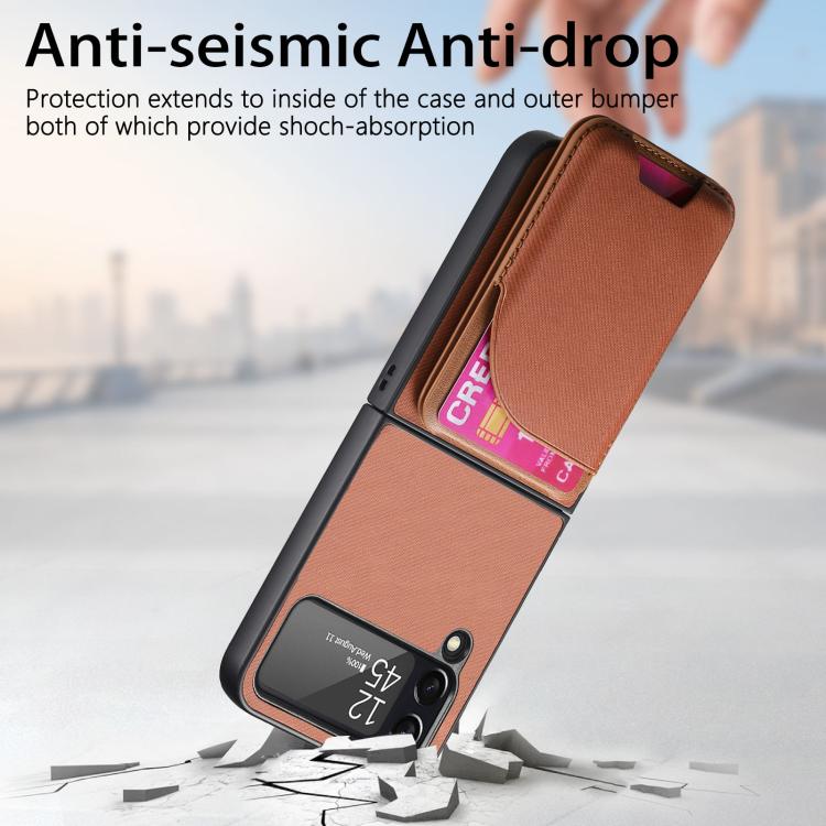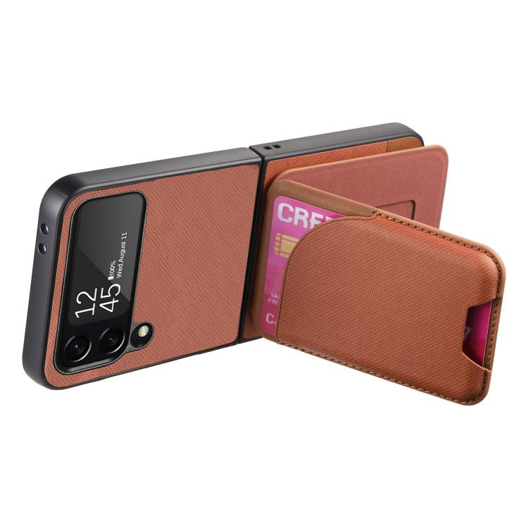 For Samsung Galaxy Z Flip4 Twill Fabric Leather Skin Card Bag Magnetic Back Phone Case(Brown)