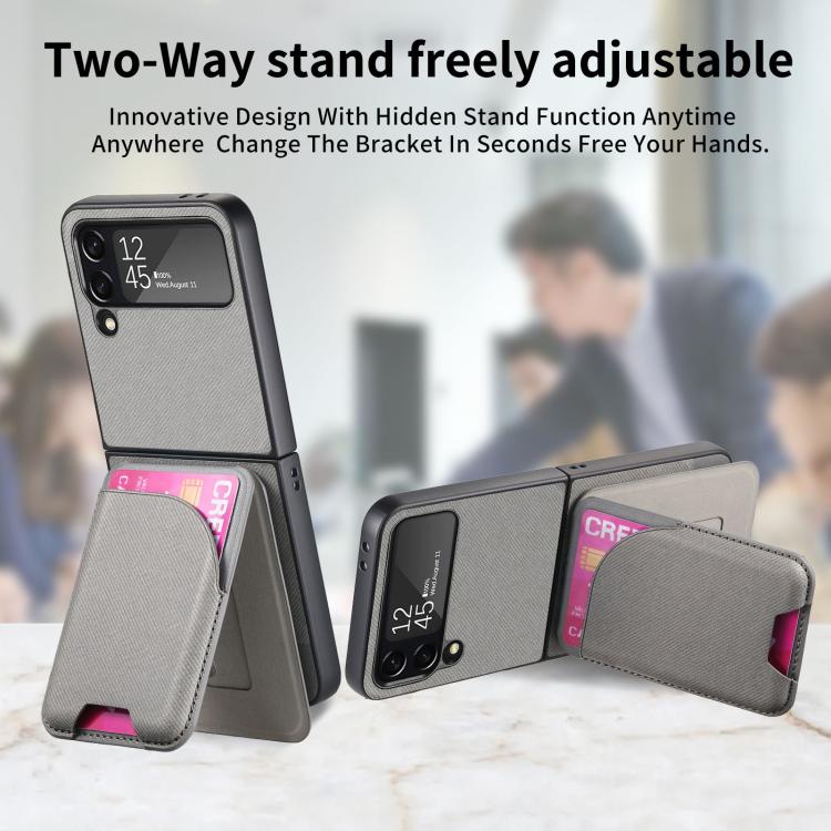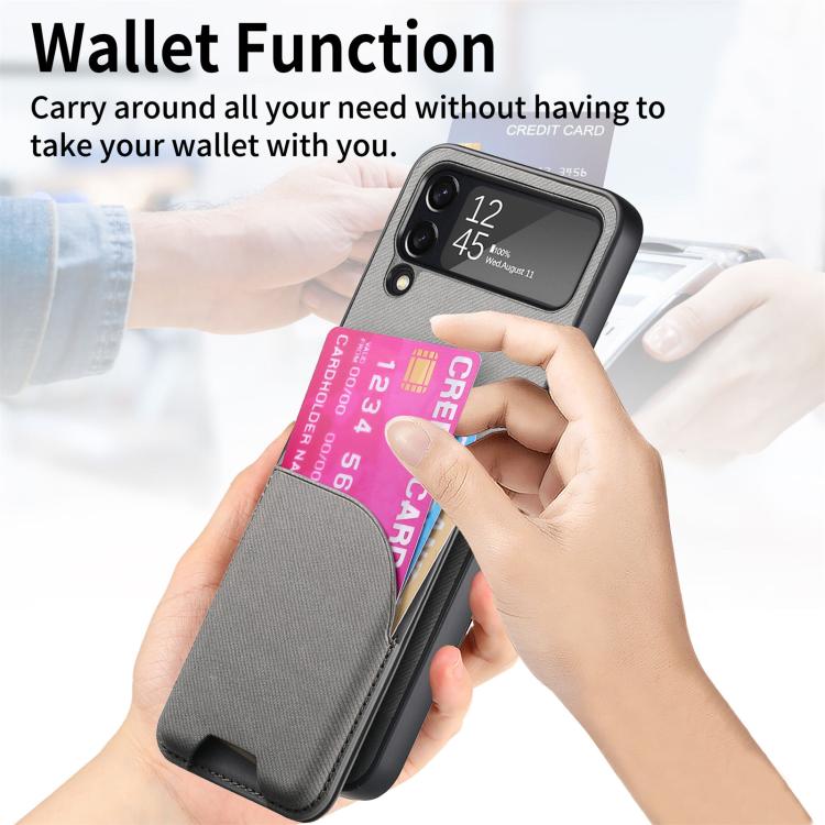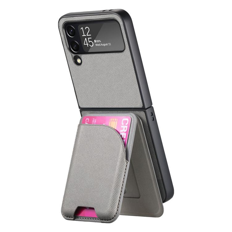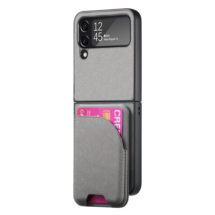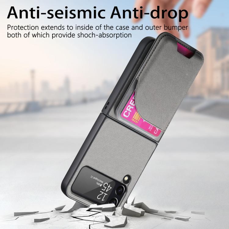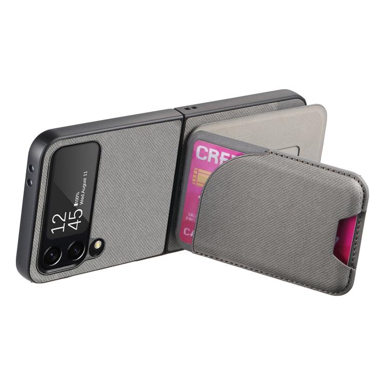 For Samsung Galaxy Z Flip4 Twill Fabric Leather Skin Card Bag Magnetic Back Phone Case(Gray)