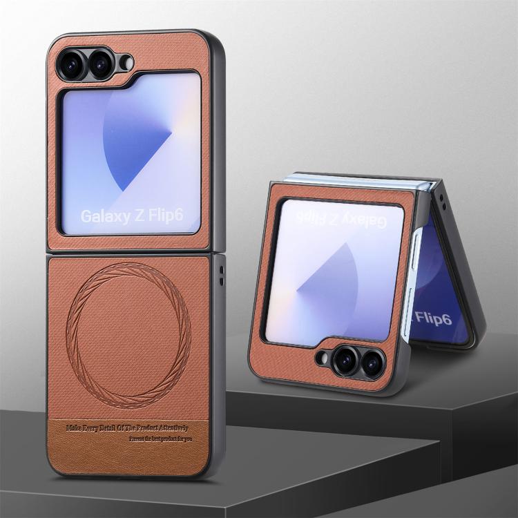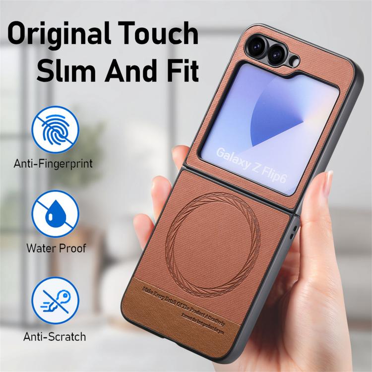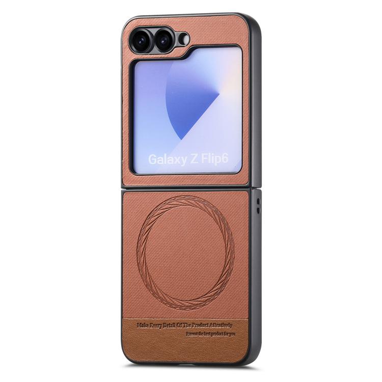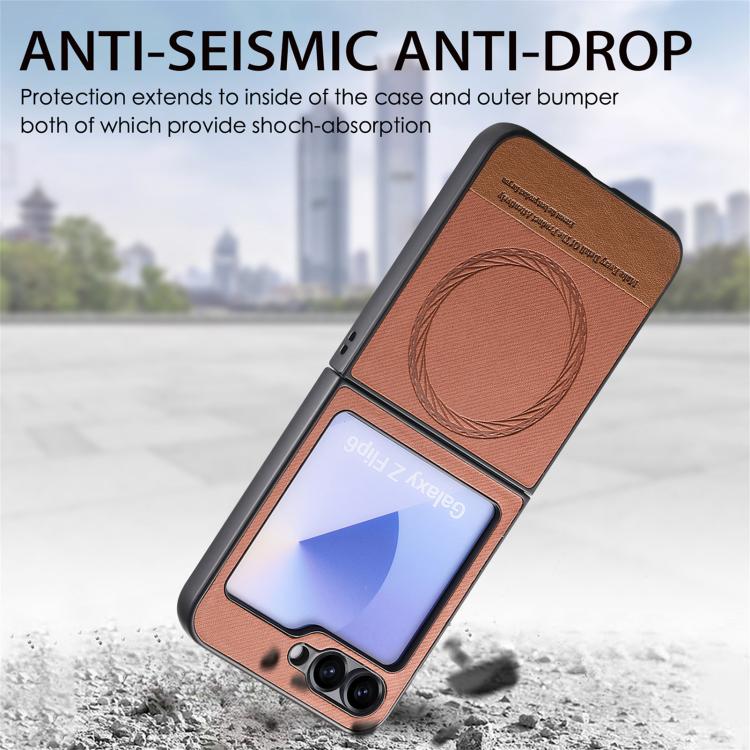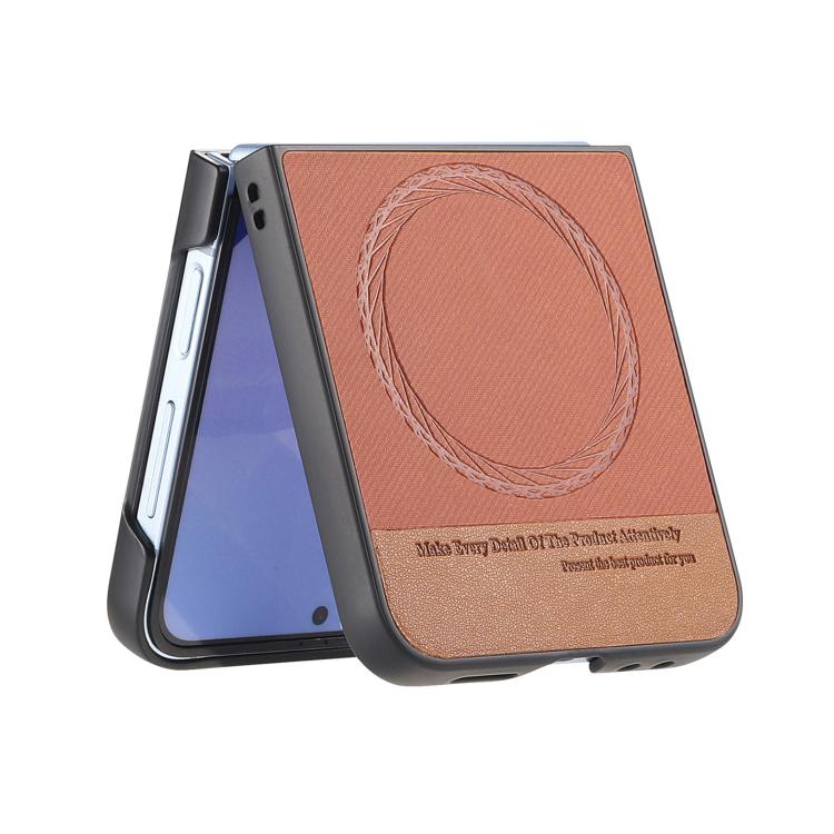 For Samsung Galaxy Z Flip4 Twill Fabric Leather Skin Magnetic Back Phone Case(Brown)