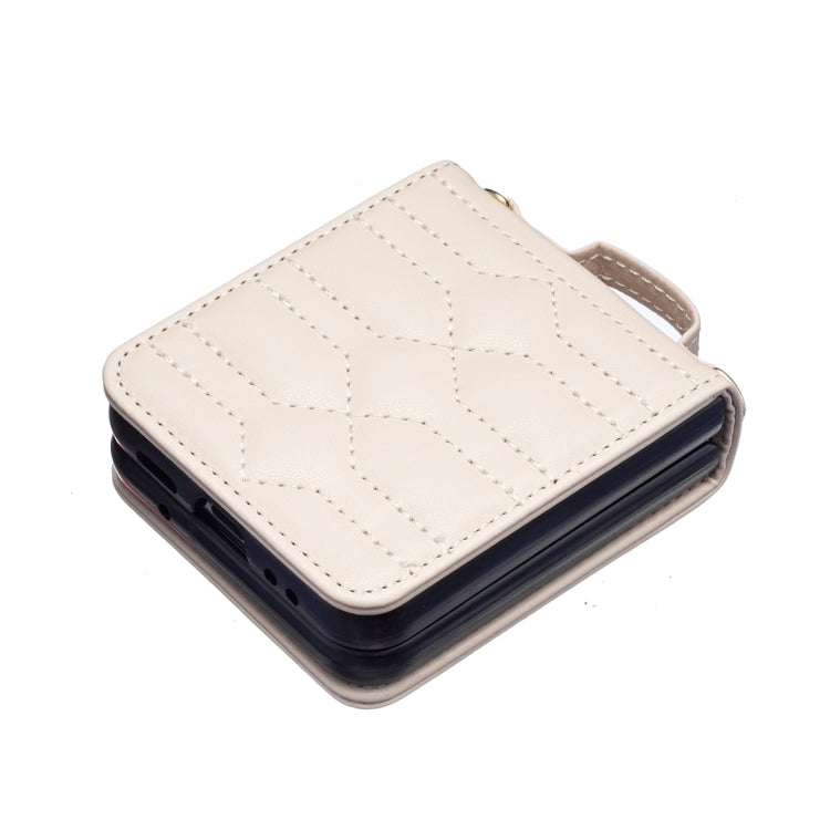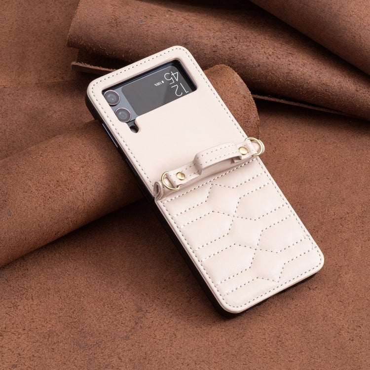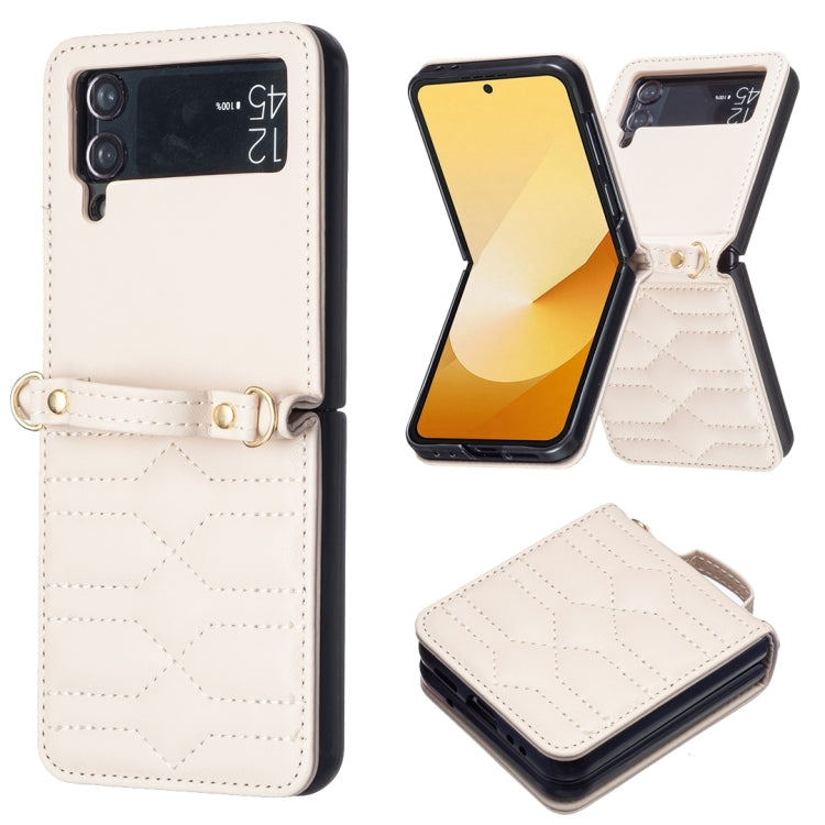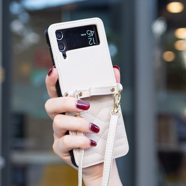 For Samsung Galaxy Z Flip4 V-shaped Crossbody Lanyard Leather Phone Case(Beige)