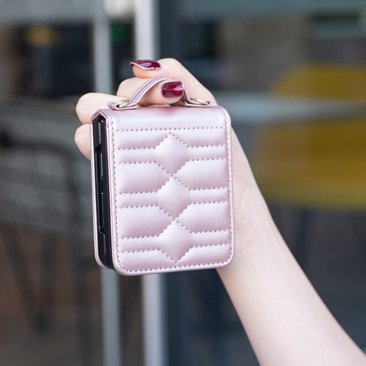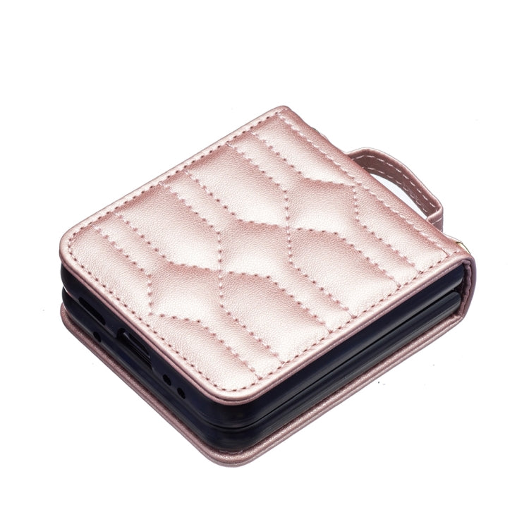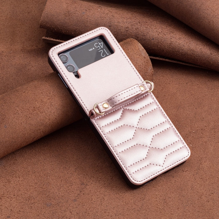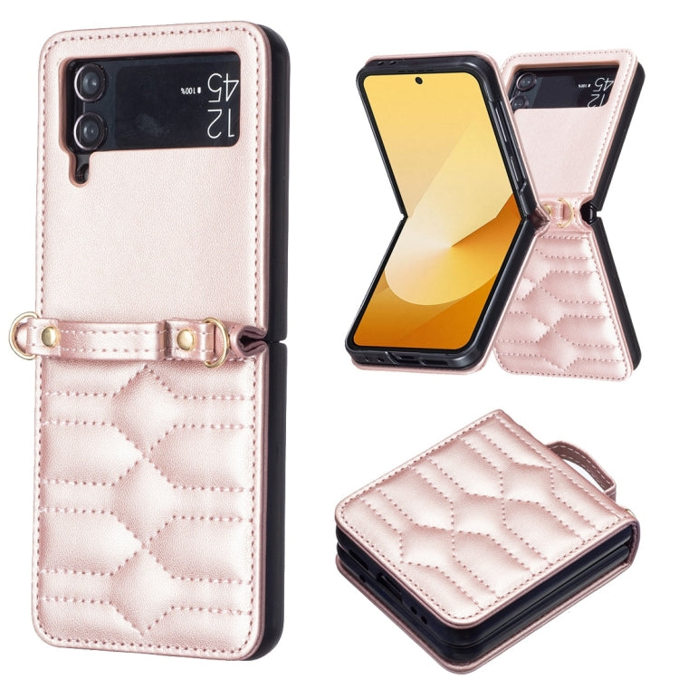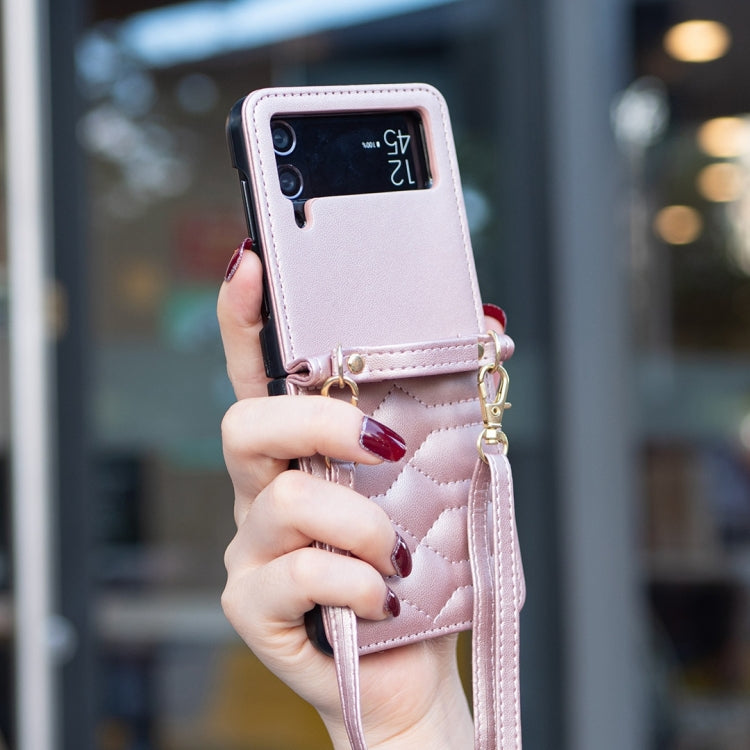 For Samsung Galaxy Z Flip4 V-shaped Crossbody Lanyard Leather Phone Case(Rose Gold)