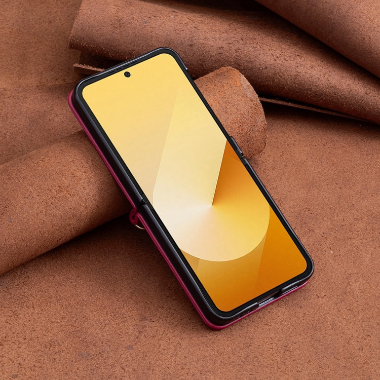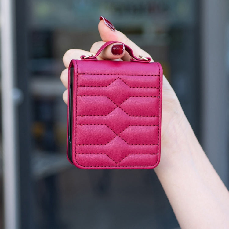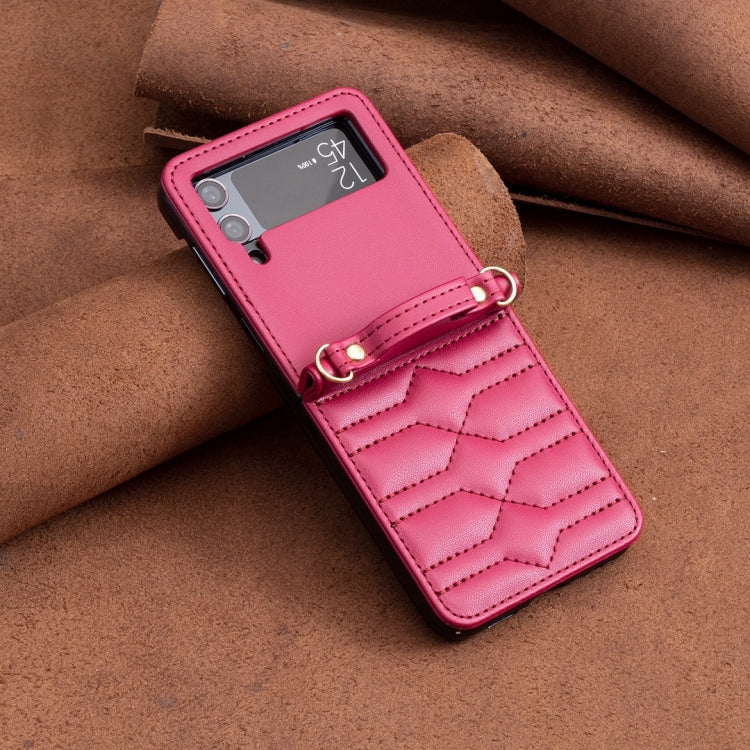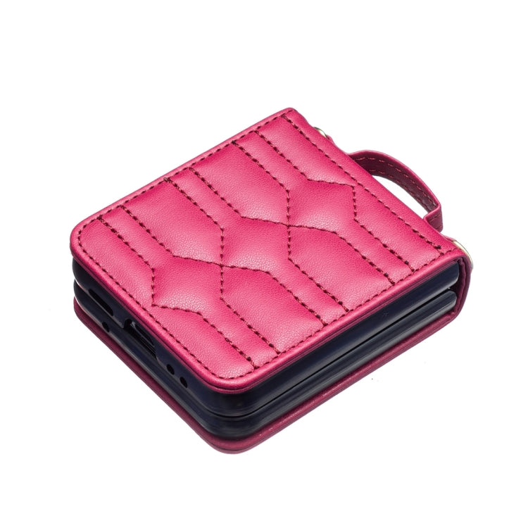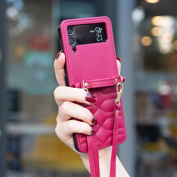 For Samsung Galaxy Z Flip4 V-shaped Crossbody Lanyard Leather Phone Case(Rose Red)