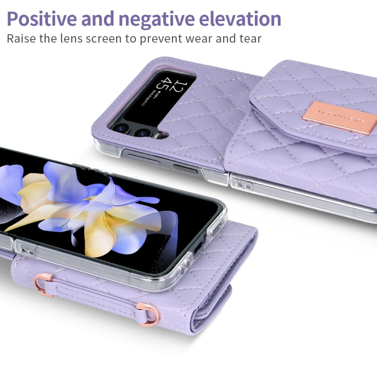 For Samsung Galaxy Z Flip4 VIETAO Rhombic Texture Wallet PU Phone Case with Long Lanyard(Purple)