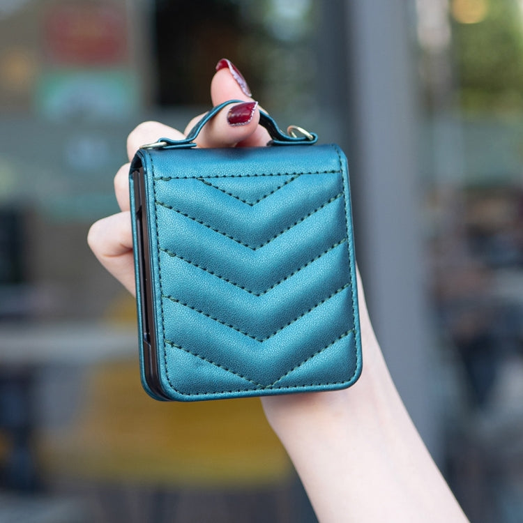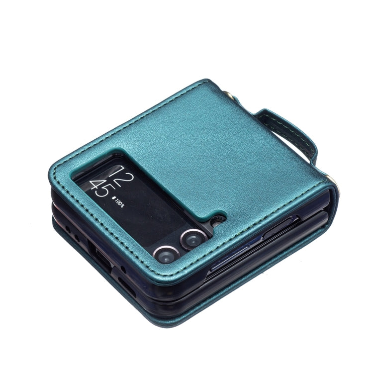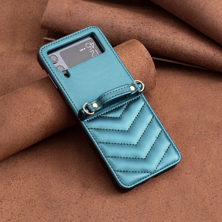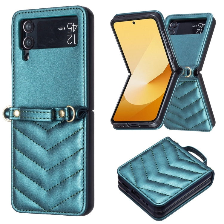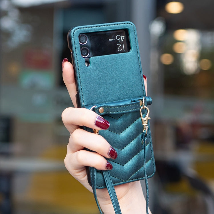 For Samsung Galaxy Z Flip4 Wave-shaped Crossbody Lanyard Leather Phone Case(Green)